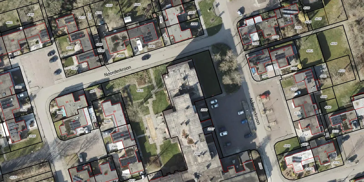 Het perceel waarop Noorderkroon 314 staat heeft een oppervlakte van 2253 m². Dit is een zeer groot perceel. De perceeloppervlakte wordt geregistreerd door het Kadaster. Gedetailleerde informatie over de maten van dit perceel kunt u vinden in het rapport Kadastrale kaart met maatvoering van Noorderkroon 314.