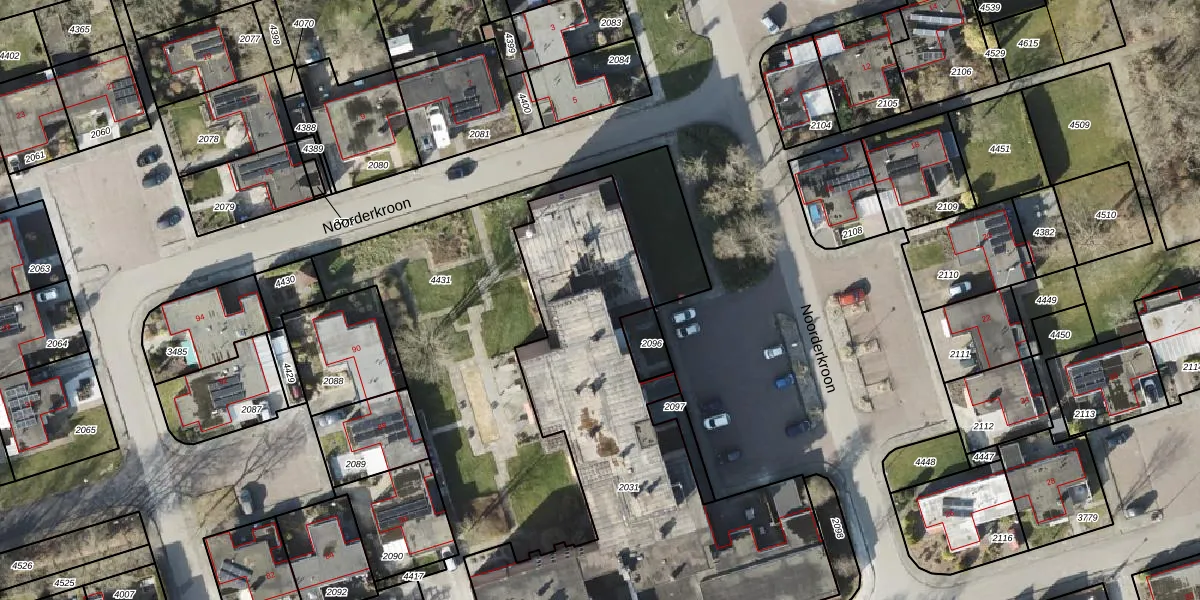 Het perceel waarop Noorderkroon 318 staat heeft een oppervlakte van 2253 m². Dit is een zeer groot perceel. De perceeloppervlakte wordt geregistreerd door het Kadaster. Gedetailleerde informatie over de maten van dit perceel kunt u vinden in het rapport Kadastrale kaart met maatvoering van Noorderkroon 318.