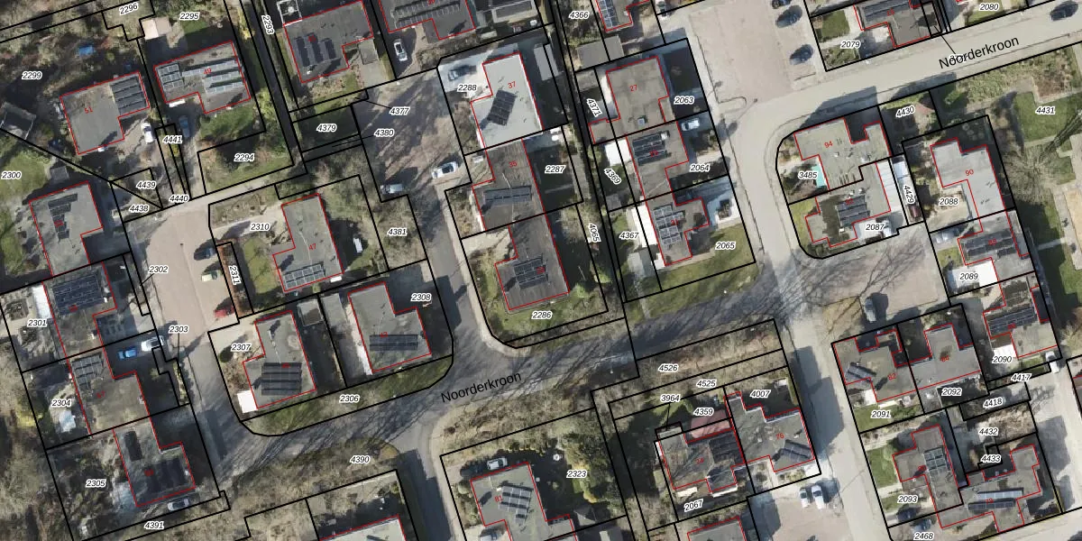 Het perceel waarop Noorderkroon 33 staat heeft een oppervlakte van 449 m². Dit is een groot perceel. De perceeloppervlakte wordt geregistreerd door het Kadaster. Gedetailleerde informatie over de maten van dit perceel kunt u vinden in het rapport Kadastrale kaart met maatvoering van Noorderkroon 33.