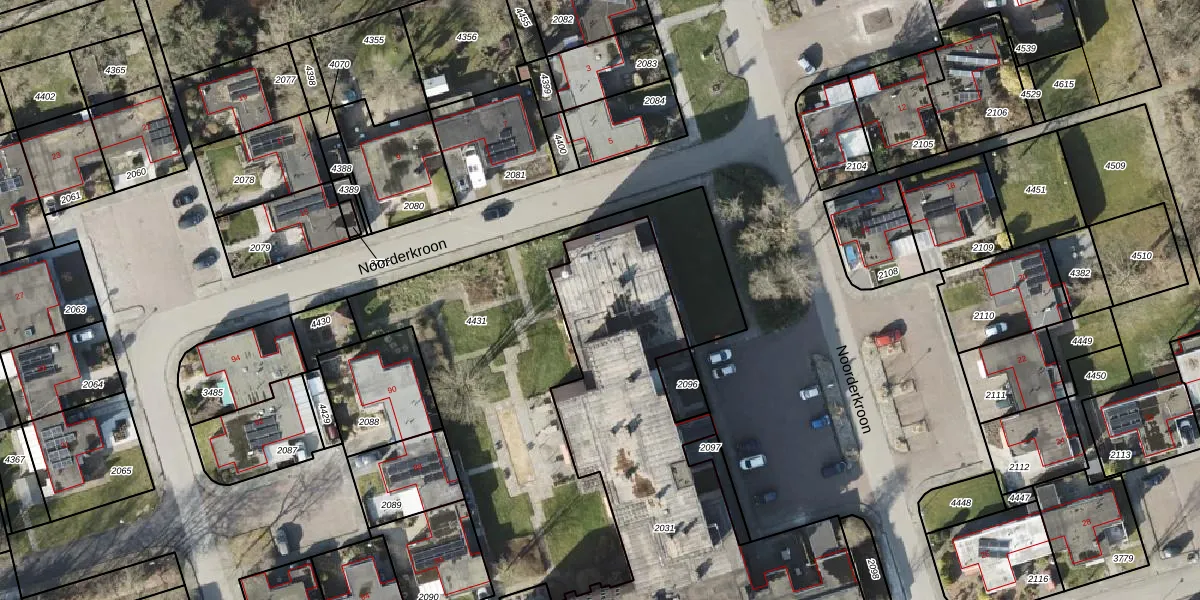 Het perceel waarop Noorderkroon 413 staat heeft een oppervlakte van 2253 m². Dit is een zeer groot perceel. De perceeloppervlakte wordt geregistreerd door het Kadaster. Gedetailleerde informatie over de maten van dit perceel kunt u vinden in het rapport Kadastrale kaart met maatvoering van Noorderkroon 413.