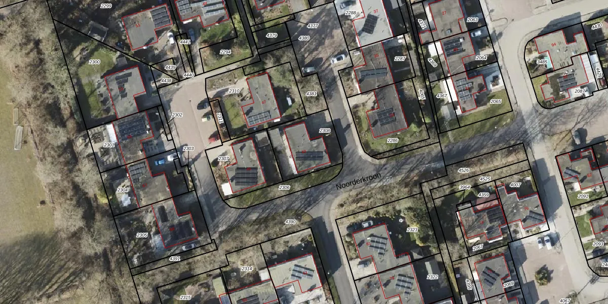 Het perceel waarop Noorderkroon 43 staat heeft een oppervlakte van 385 m². Dit is een groot perceel. De perceeloppervlakte wordt geregistreerd door het Kadaster. Gedetailleerde informatie over de maten van dit perceel kunt u vinden in het rapport Kadastrale kaart met maatvoering van Noorderkroon 43.