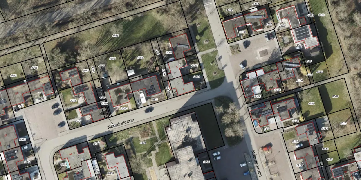 Noorderkroon 5 is gelegen op kadastraal perceel RDN01H2084. Deze kadastrale aanduiding is uniek en wordt gebruikt door het Kadaster om eigendomsrechten en andere zakelijke rechten vast te leggen. Het perceel maakt onderdeel uit van de kadastrale gemeente Roden.