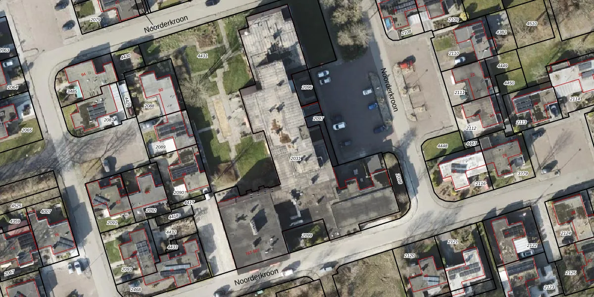 Het perceel waarop Noorderkroon 502 staat heeft een oppervlakte van 2253 m². Dit is een zeer groot perceel. De perceeloppervlakte wordt geregistreerd door het Kadaster. Gedetailleerde informatie over de maten van dit perceel kunt u vinden in het rapport Kadastrale kaart met maatvoering van Noorderkroon 502.