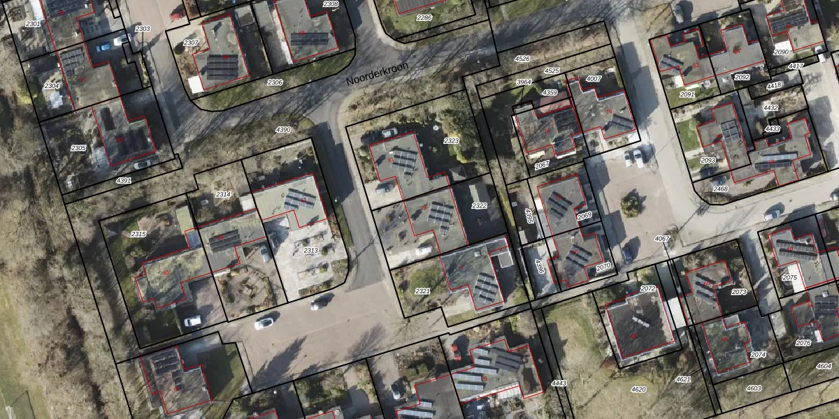 Het perceel waarop Noorderkroon 79 staat heeft een oppervlakte van 444 m². Dit is een groot perceel. De perceeloppervlakte wordt geregistreerd door het Kadaster. Gedetailleerde informatie over de maten van dit perceel kunt u vinden in het rapport Kadastrale kaart met maatvoering van Noorderkroon 79.