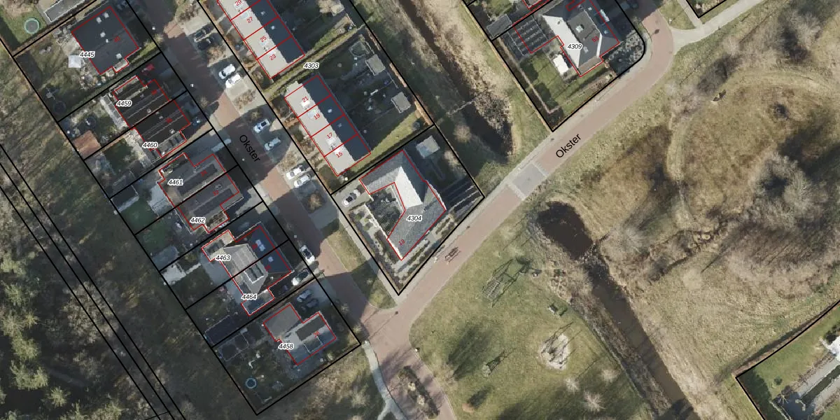 Okster 13 is gelegen op kadastraal perceel RDN01H4304. Deze kadastrale aanduiding is uniek en wordt gebruikt door het Kadaster om eigendomsrechten en andere zakelijke rechten vast te leggen. Het perceel maakt onderdeel uit van de kadastrale gemeente Roden.