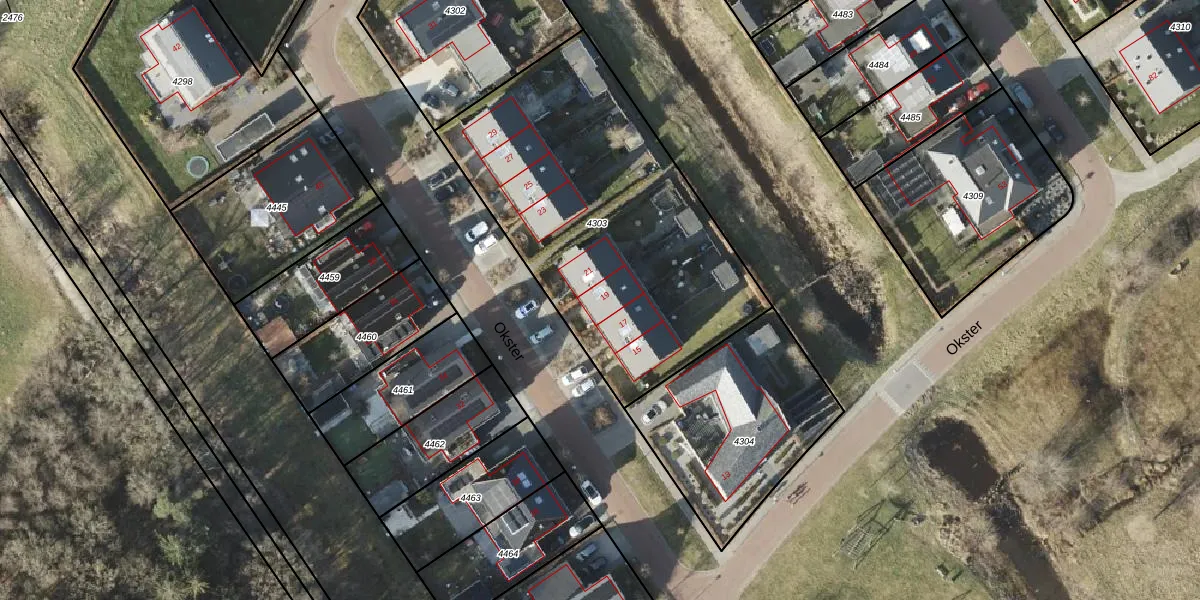 Okster 19 is gelegen op kadastraal perceel RDN01H4303. Deze kadastrale aanduiding is uniek en wordt gebruikt door het Kadaster om eigendomsrechten en andere zakelijke rechten vast te leggen. Het perceel maakt onderdeel uit van de kadastrale gemeente Roden.