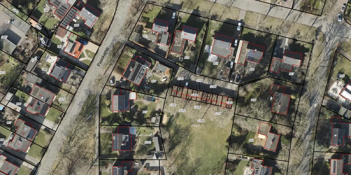Paaskamp 9-X-1 is gelegen op kadastraal perceel RDN01E1192. Deze kadastrale aanduiding is uniek en wordt gebruikt door het Kadaster om eigendomsrechten en andere zakelijke rechten vast te leggen. Het perceel maakt onderdeel uit van de kadastrale gemeente Roden.