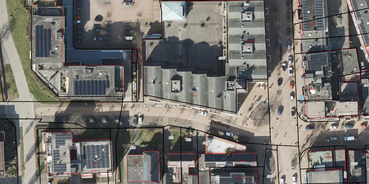 Het perceel waarop Padkamp 15 staat heeft een oppervlakte van 3345 m². Dit is een zeer groot perceel. De perceeloppervlakte wordt geregistreerd door het Kadaster. Gedetailleerde informatie over de maten van dit perceel kunt u vinden in het rapport Kadastrale kaart met maatvoering van Padkamp 15.