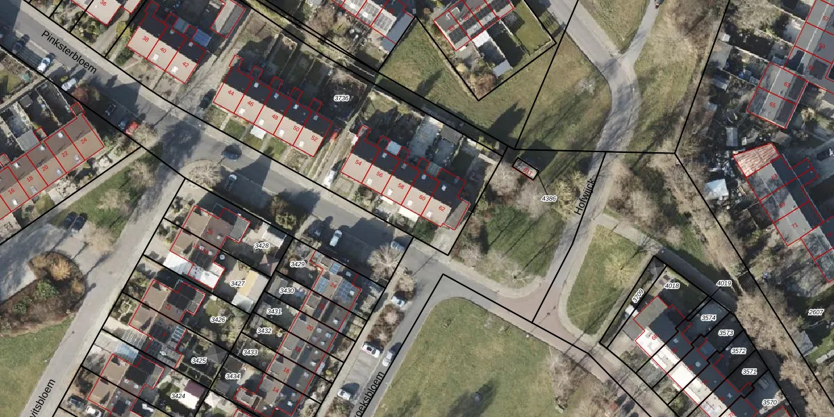 Het perceel waarop Pinksterbloem 60 staat heeft een oppervlakte van 2639 m². Dit is een zeer groot perceel. De perceeloppervlakte wordt geregistreerd door het Kadaster. Gedetailleerde informatie over de maten van dit perceel kunt u vinden in het rapport Kadastrale kaart met maatvoering van Pinksterbloem 60.