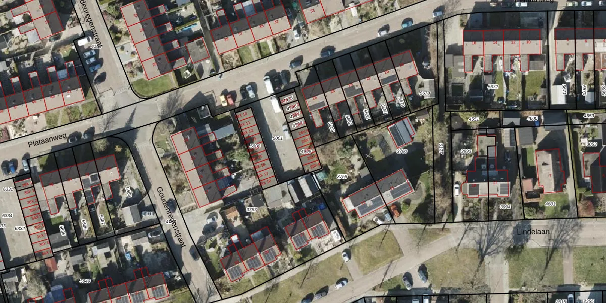 Plataanweg 28-X-7 is gelegen op kadastraal perceel RDN01I4999. Deze kadastrale aanduiding is uniek en wordt gebruikt door het Kadaster om eigendomsrechten en andere zakelijke rechten vast te leggen. Het perceel maakt onderdeel uit van de kadastrale gemeente Roden.