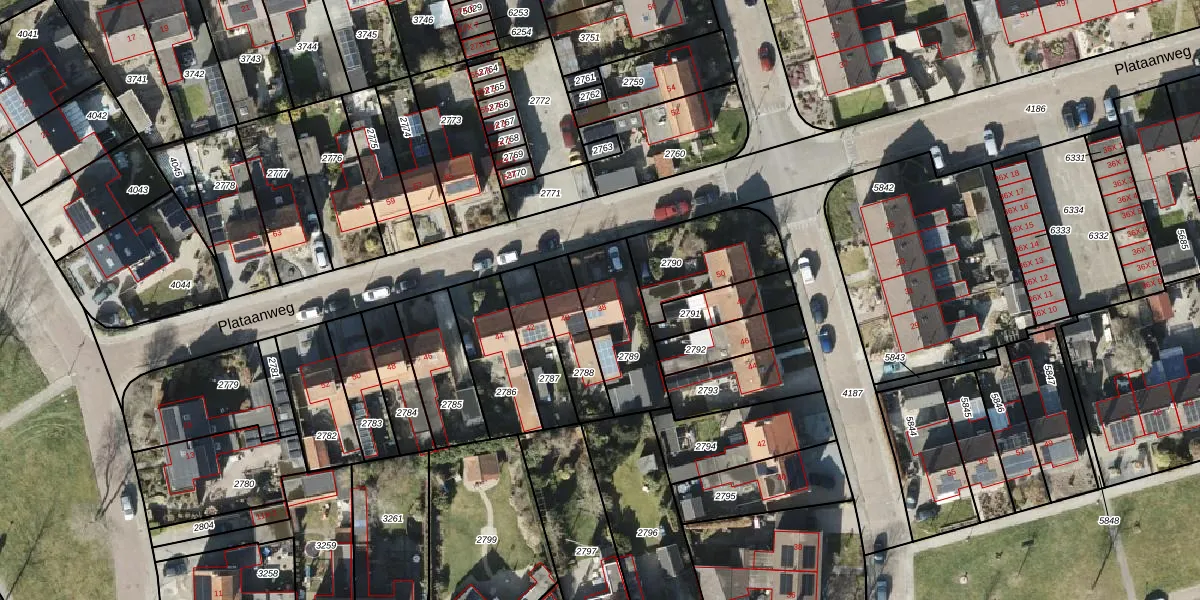 Plataanweg 38 is gelegen op kadastraal perceel RDN01I2789. Deze kadastrale aanduiding is uniek en wordt gebruikt door het Kadaster om eigendomsrechten en andere zakelijke rechten vast te leggen. Het perceel maakt onderdeel uit van de kadastrale gemeente Roden.