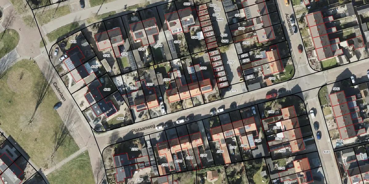 Plataanweg 59 is gelegen op kadastraal perceel RDN01I2775. Deze kadastrale aanduiding is uniek en wordt gebruikt door het Kadaster om eigendomsrechten en andere zakelijke rechten vast te leggen. Het perceel maakt onderdeel uit van de kadastrale gemeente Roden.