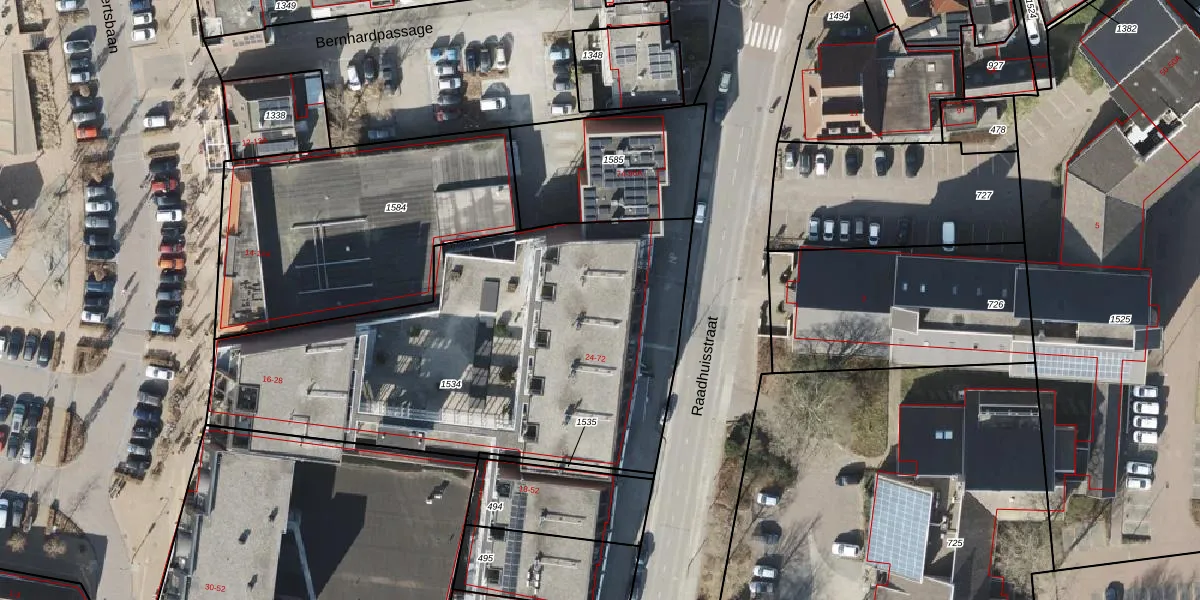 Het perceel waarop Raadhuisstraat 66 staat heeft een oppervlakte van 2276 m². Dit is een zeer groot perceel. De perceeloppervlakte wordt geregistreerd door het Kadaster. Gedetailleerde informatie over de maten van dit perceel kunt u vinden in het rapport Kadastrale kaart met maatvoering van Raadhuisstraat 66.