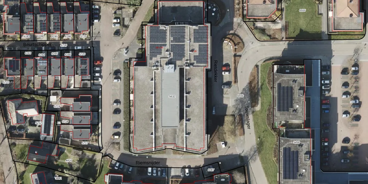 Riemsnijder 100 is gelegen op kadastraal perceel RDN01I5632. Deze kadastrale aanduiding is uniek en wordt gebruikt door het Kadaster om eigendomsrechten en andere zakelijke rechten vast te leggen. Het perceel maakt onderdeel uit van de kadastrale gemeente Roden.