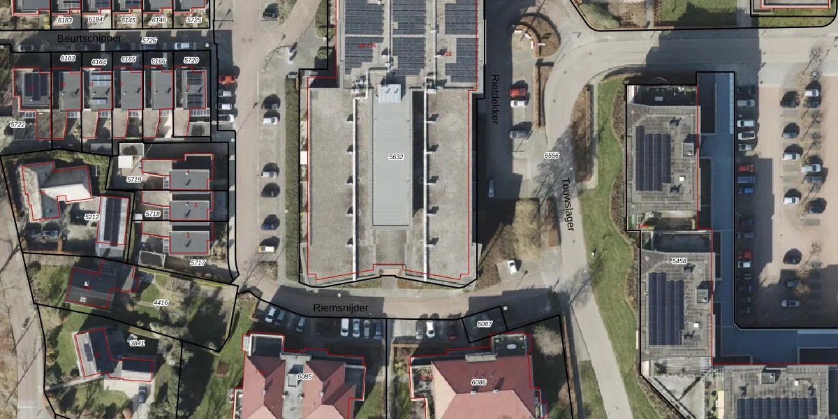 Riemsnijder 110 is gelegen op kadastraal perceel RDN01I5632. Deze kadastrale aanduiding is uniek en wordt gebruikt door het Kadaster om eigendomsrechten en andere zakelijke rechten vast te leggen. Het perceel maakt onderdeel uit van de kadastrale gemeente Roden.