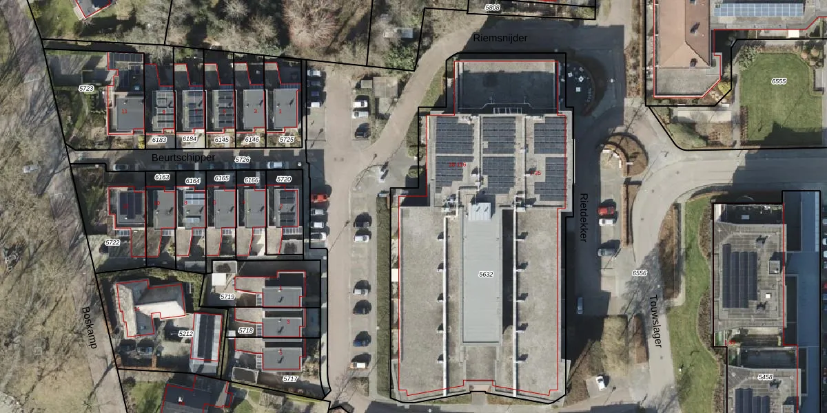 Riemsnijder 28 is gelegen op kadastraal perceel RDN01I5632. Deze kadastrale aanduiding is uniek en wordt gebruikt door het Kadaster om eigendomsrechten en andere zakelijke rechten vast te leggen. Het perceel maakt onderdeel uit van de kadastrale gemeente Roden.