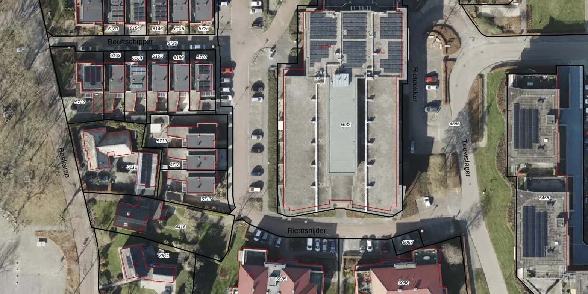 Riemsnijder 44 is gelegen op kadastraal perceel RDN01I5632. Deze kadastrale aanduiding is uniek en wordt gebruikt door het Kadaster om eigendomsrechten en andere zakelijke rechten vast te leggen. Het perceel maakt onderdeel uit van de kadastrale gemeente Roden.