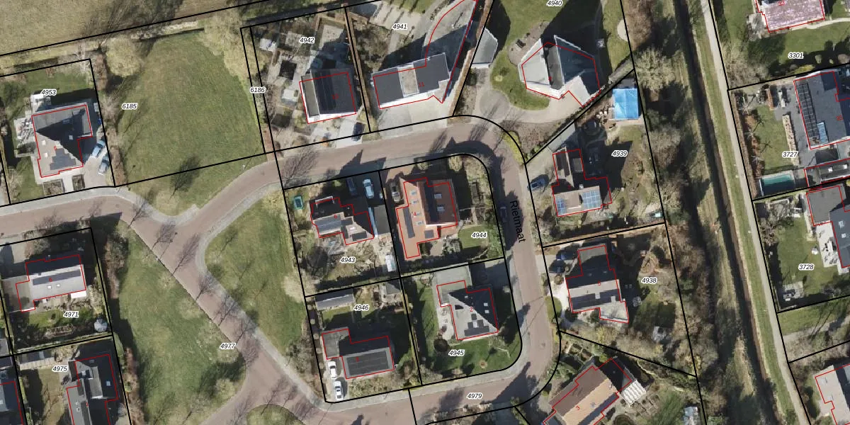 Het perceel waarop Rietmaat 4 staat heeft een oppervlakte van 637 m². Dit is een groot perceel. De perceeloppervlakte wordt geregistreerd door het Kadaster. Gedetailleerde informatie over de maten van dit perceel kunt u vinden in het rapport Kadastrale kaart met maatvoering van Rietmaat 4.