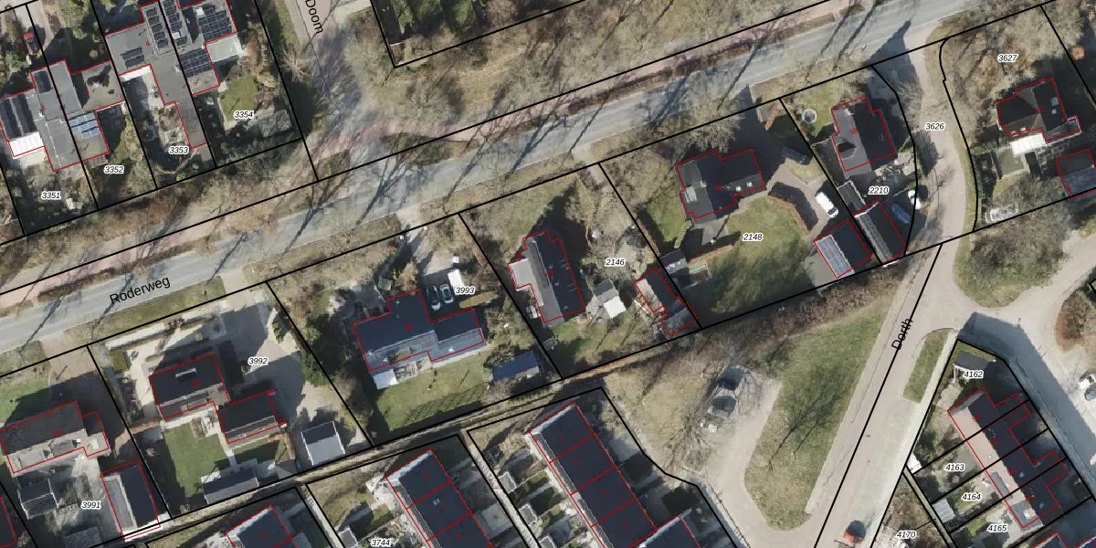 Roderweg 46 is gelegen op kadastraal perceel RDN01H2146. Deze kadastrale aanduiding is uniek en wordt gebruikt door het Kadaster om eigendomsrechten en andere zakelijke rechten vast te leggen. Het perceel maakt onderdeel uit van de kadastrale gemeente Roden.