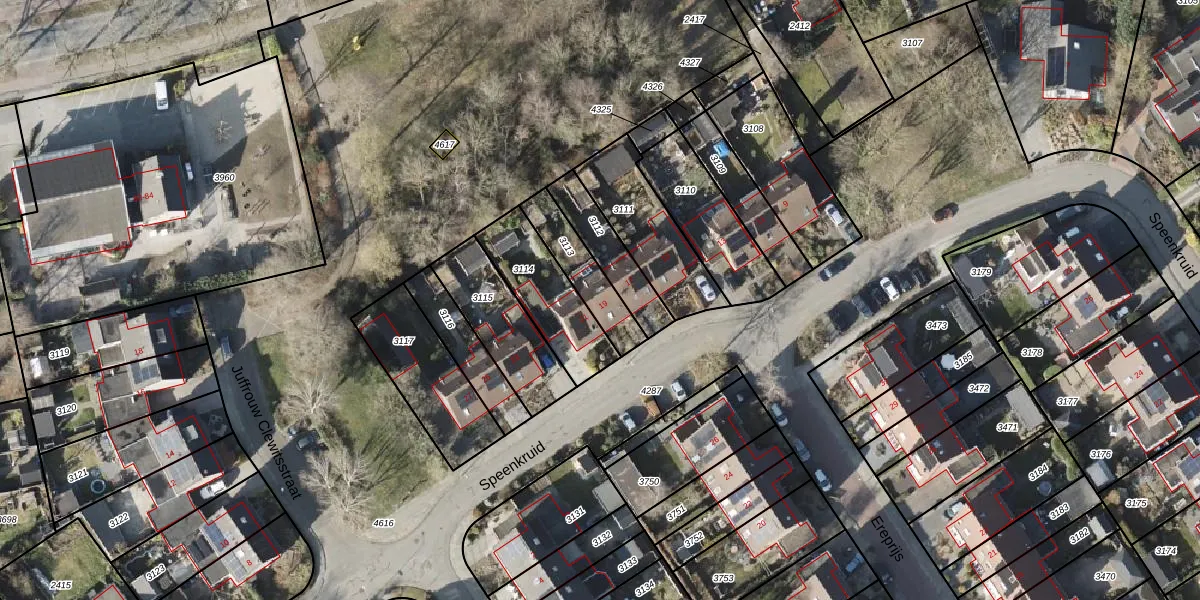 Speenkruid 19 is gelegen op kadastraal perceel RDN01H3113. Deze kadastrale aanduiding is uniek en wordt gebruikt door het Kadaster om eigendomsrechten en andere zakelijke rechten vast te leggen. Het perceel maakt onderdeel uit van de kadastrale gemeente Roden.