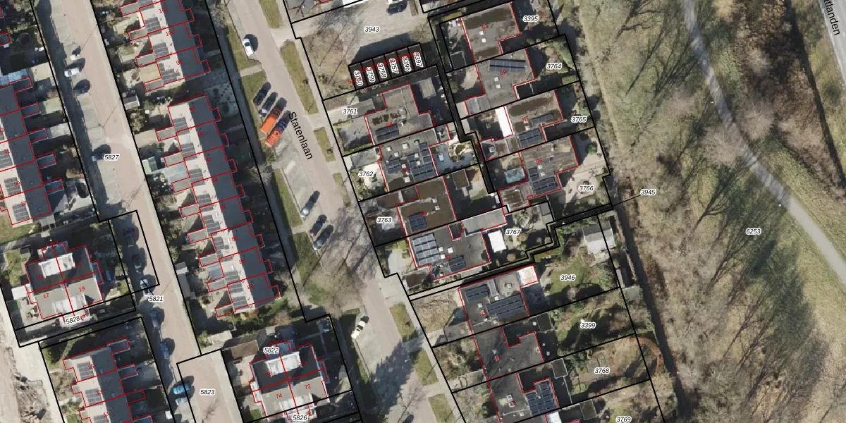 Statenlaan 49 is gelegen op kadastraal perceel RDN01K3763. Deze kadastrale aanduiding is uniek en wordt gebruikt door het Kadaster om eigendomsrechten en andere zakelijke rechten vast te leggen. Het perceel maakt onderdeel uit van de kadastrale gemeente Roden.