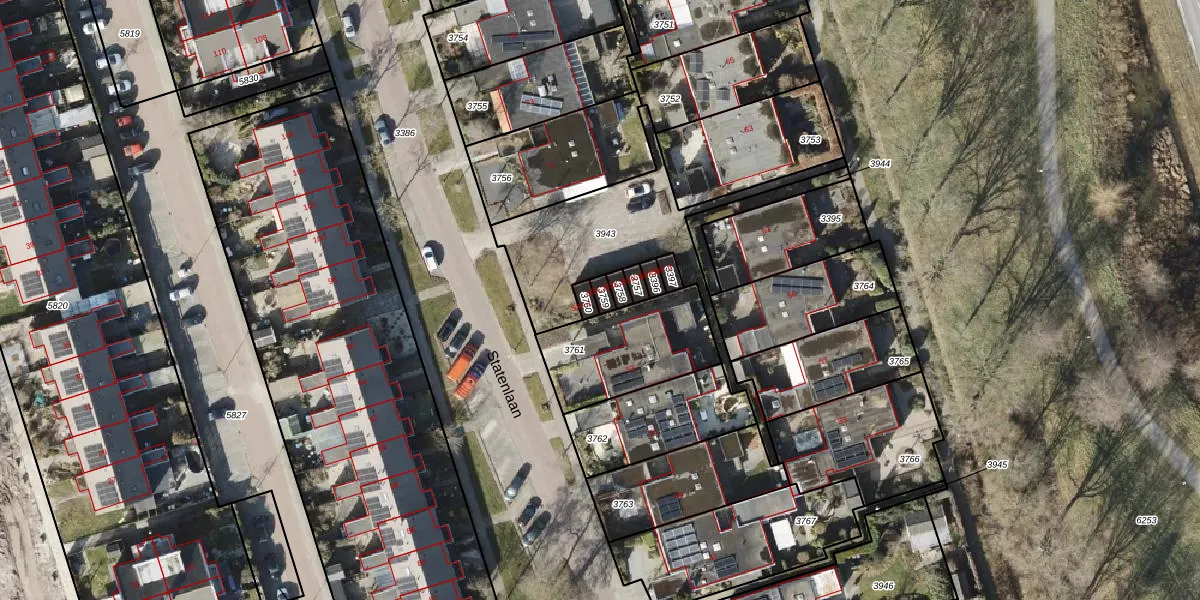 Statenlaan 53-X-2 is gelegen op kadastraal perceel RDN01K3759. Deze kadastrale aanduiding is uniek en wordt gebruikt door het Kadaster om eigendomsrechten en andere zakelijke rechten vast te leggen. Het perceel maakt onderdeel uit van de kadastrale gemeente Roden.