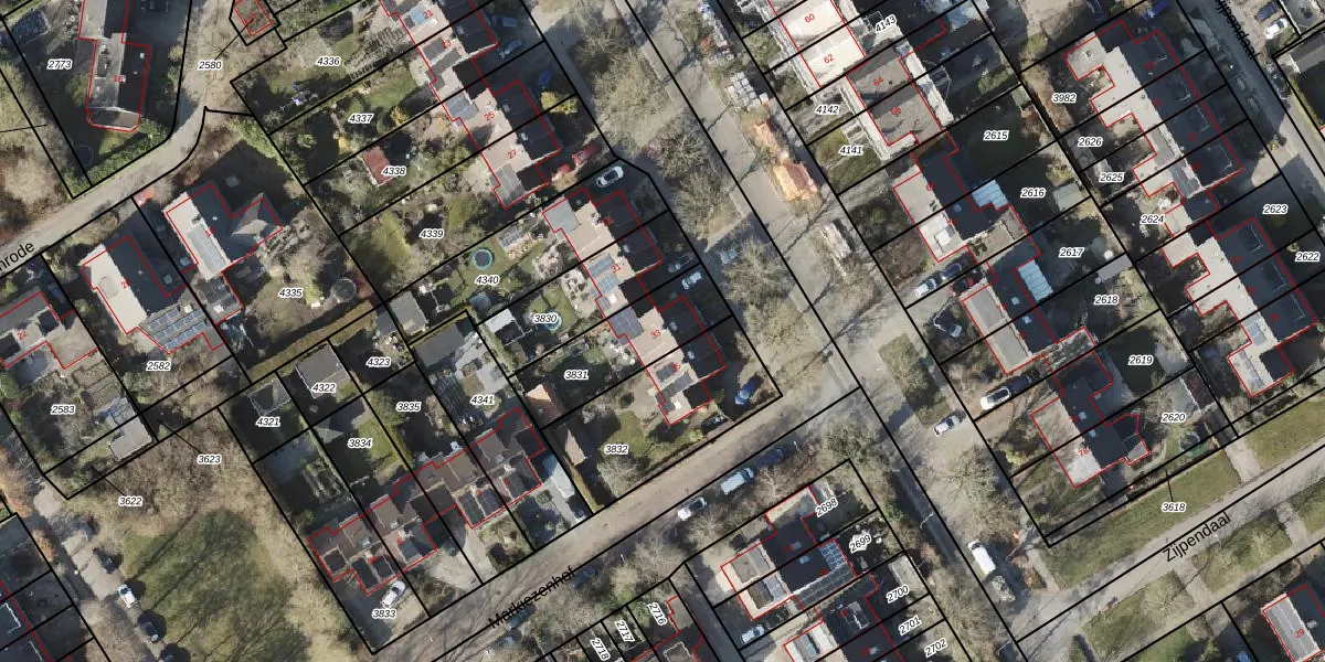 Gebruik de zoekbalk of klik op een perceel voor informatie over de adressen binnen dit perceel.
