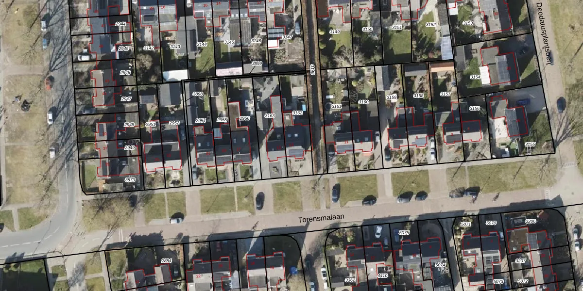 Torensmalaan 13 is gelegen op kadastraal perceel RDN01I3162. Deze kadastrale aanduiding is uniek en wordt gebruikt door het Kadaster om eigendomsrechten en andere zakelijke rechten vast te leggen. Het perceel maakt onderdeel uit van de kadastrale gemeente Roden.