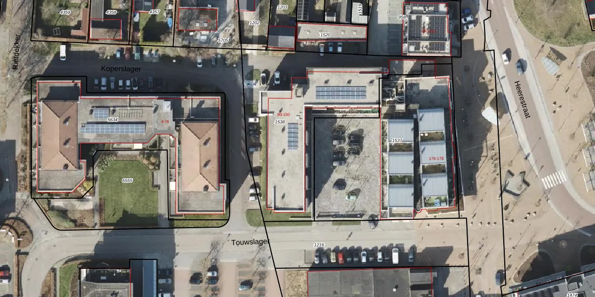 Het perceel waarop Touwslager 114 staat heeft een oppervlakte van 1854 m². Dit is een zeer groot perceel. De perceeloppervlakte wordt geregistreerd door het Kadaster. Gedetailleerde informatie over de maten van dit perceel kunt u vinden in het rapport Kadastrale kaart met maatvoering van Touwslager 114.