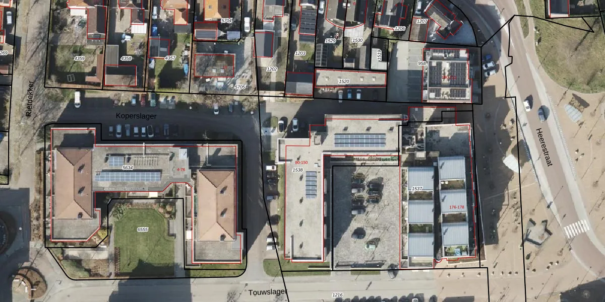 Het perceel waarop Touwslager 118 staat heeft een oppervlakte van 1854 m². Dit is een zeer groot perceel. De perceeloppervlakte wordt geregistreerd door het Kadaster. Gedetailleerde informatie over de maten van dit perceel kunt u vinden in het rapport Kadastrale kaart met maatvoering van Touwslager 118.