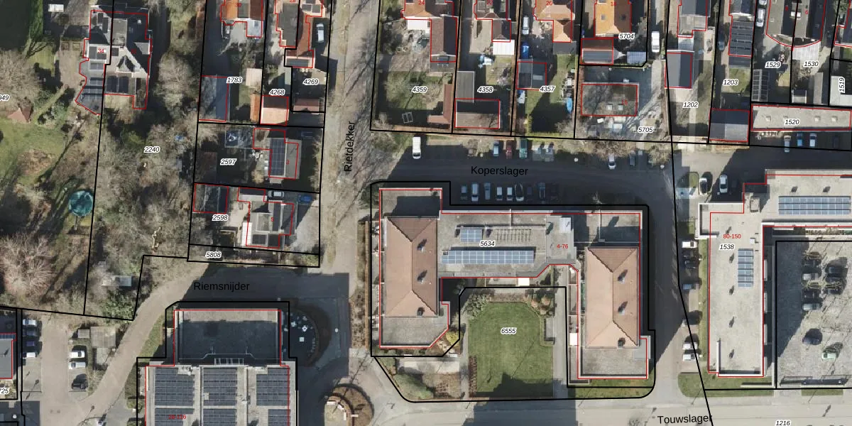 Het perceel waarop Touwslager 64 staat heeft een oppervlakte van 2164 m². Dit is een zeer groot perceel. De perceeloppervlakte wordt geregistreerd door het Kadaster. Gedetailleerde informatie over de maten van dit perceel kunt u vinden in het rapport Kadastrale kaart met maatvoering van Touwslager 64.