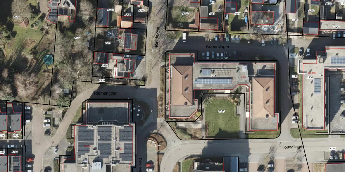 Het perceel waarop Touwslager 72 staat heeft een oppervlakte van 2164 m². Dit is een zeer groot perceel. De perceeloppervlakte wordt geregistreerd door het Kadaster. Gedetailleerde informatie over de maten van dit perceel kunt u vinden in het rapport Kadastrale kaart met maatvoering van Touwslager 72.