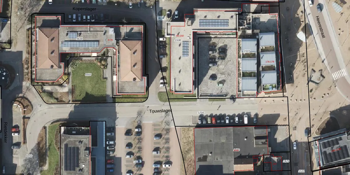 Het perceel waarop Touwslager 80 staat heeft een oppervlakte van 1854 m². Dit is een zeer groot perceel. De perceeloppervlakte wordt geregistreerd door het Kadaster. Gedetailleerde informatie over de maten van dit perceel kunt u vinden in het rapport Kadastrale kaart met maatvoering van Touwslager 80.