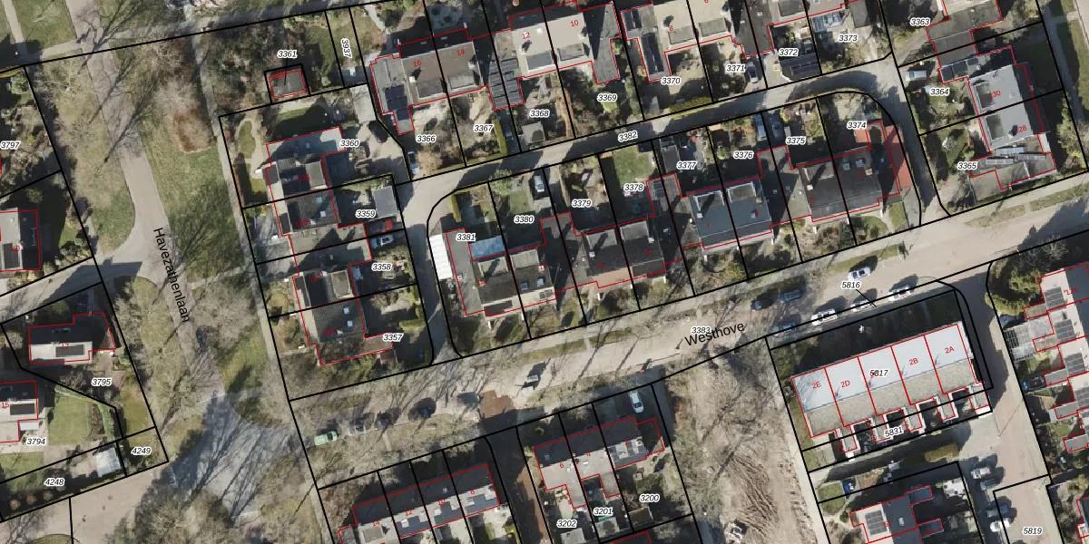 Het perceel waarop Westhove 13 staat heeft een oppervlakte van 317 m². Dit is een groot perceel. De perceeloppervlakte wordt geregistreerd door het Kadaster. Gedetailleerde informatie over de maten van dit perceel kunt u vinden in het rapport Kadastrale kaart met maatvoering van Westhove 13.