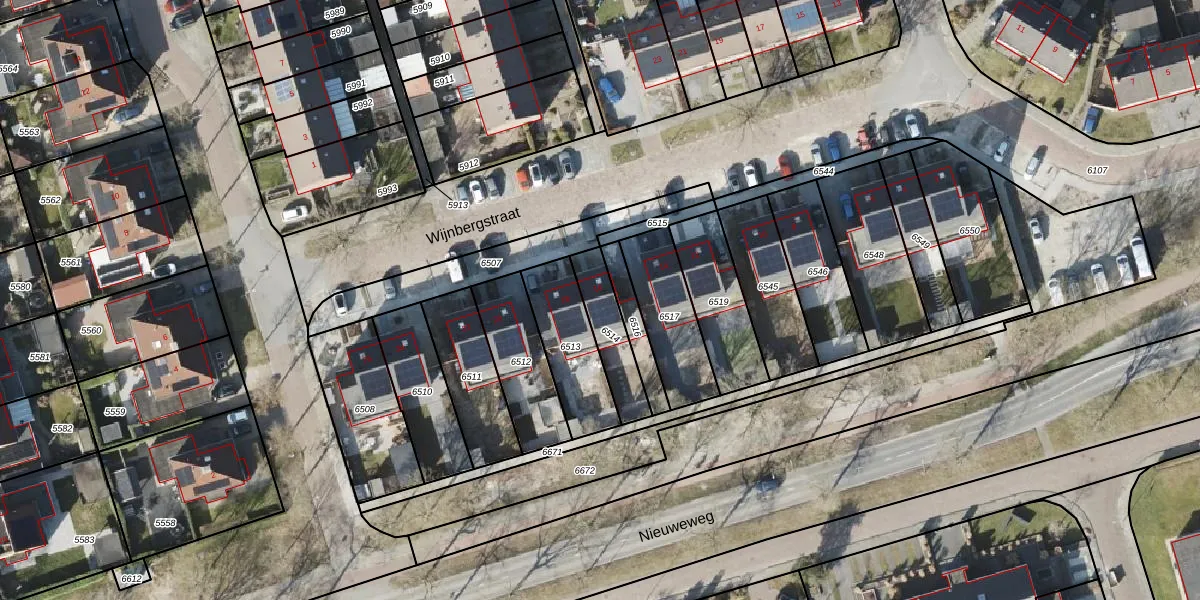 Wijnbergstraat 16 is gelegen op kadastraal perceel RDN01I6514. Deze kadastrale aanduiding is uniek en wordt gebruikt door het Kadaster om eigendomsrechten en andere zakelijke rechten vast te leggen. Het perceel maakt onderdeel uit van de kadastrale gemeente Roden.