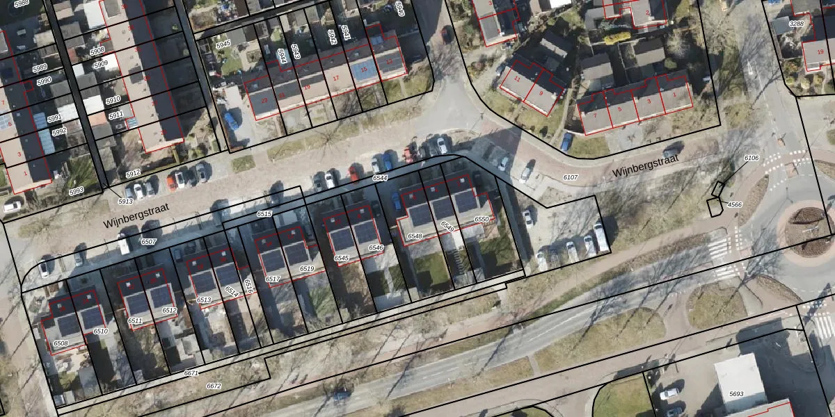 Wijnbergstraat 6 is gelegen op kadastraal perceel RDN01I6548. Deze kadastrale aanduiding is uniek en wordt gebruikt door het Kadaster om eigendomsrechten en andere zakelijke rechten vast te leggen. Het perceel maakt onderdeel uit van de kadastrale gemeente Roden.