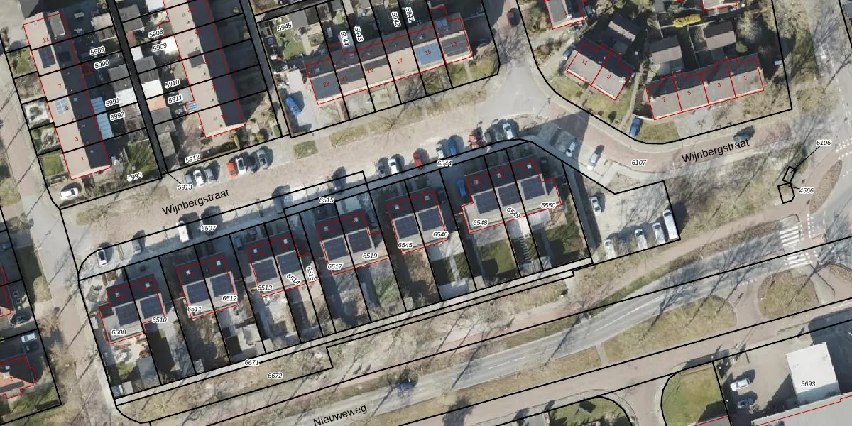 Wijnbergstraat 8 is gelegen op kadastraal perceel RDN01I6546. Deze kadastrale aanduiding is uniek en wordt gebruikt door het Kadaster om eigendomsrechten en andere zakelijke rechten vast te leggen. Het perceel maakt onderdeel uit van de kadastrale gemeente Roden.
