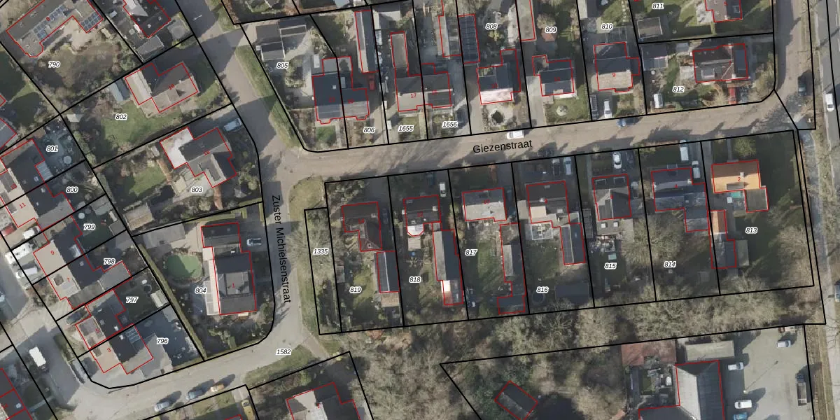 Giezenstraat 12 is gelegen op kadastraal perceel RDN01P818. Deze kadastrale aanduiding is uniek en wordt gebruikt door het Kadaster om eigendomsrechten en andere zakelijke rechten vast te leggen. Het perceel maakt onderdeel uit van de kadastrale gemeente Roden.