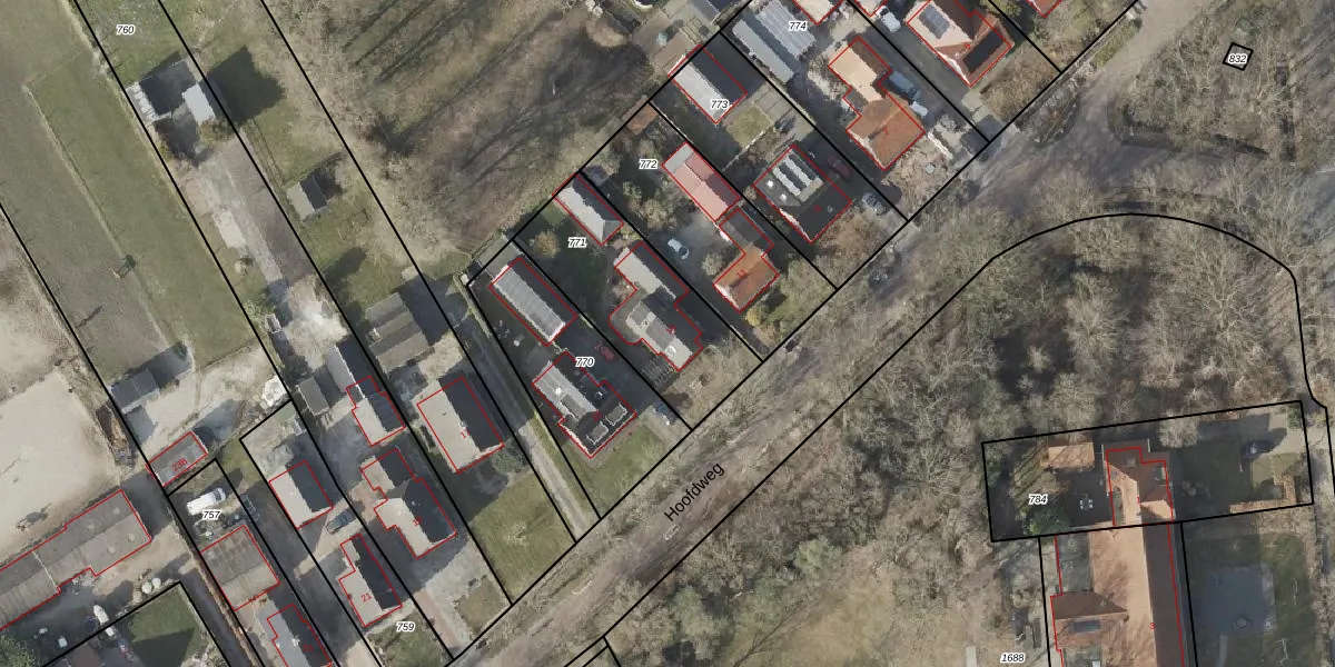 Het perceel waarop Hoofdweg 13 staat heeft een oppervlakte van 575 m². Dit is een groot perceel. De perceeloppervlakte wordt geregistreerd door het Kadaster. Gedetailleerde informatie over de maten van dit perceel kunt u vinden in het rapport Kadastrale kaart met maatvoering van Hoofdweg 13.