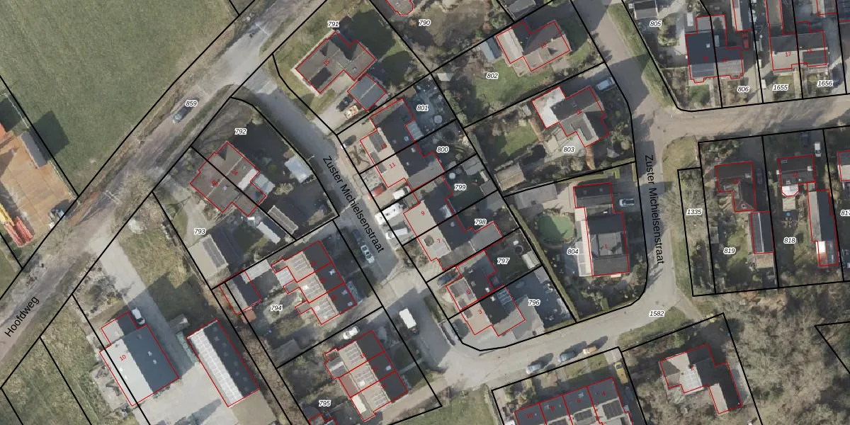 Zuster Michielsenstraat 9 is gelegen op kadastraal perceel RDN01P799. Deze kadastrale aanduiding is uniek en wordt gebruikt door het Kadaster om eigendomsrechten en andere zakelijke rechten vast te leggen. Het perceel maakt onderdeel uit van de kadastrale gemeente Roden.