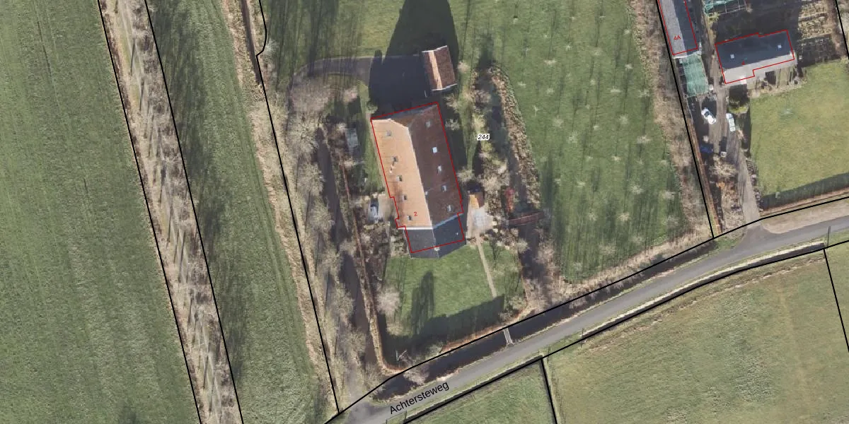 Het perceel waarop Achtersteweg 2 staat heeft een oppervlakte van 9175 m². Dit is een zeer groot perceel. De perceeloppervlakte wordt geregistreerd door het Kadaster. Gedetailleerde informatie over de maten van dit perceel kunt u vinden in het rapport Kadastrale kaart met maatvoering van Achtersteweg 2.