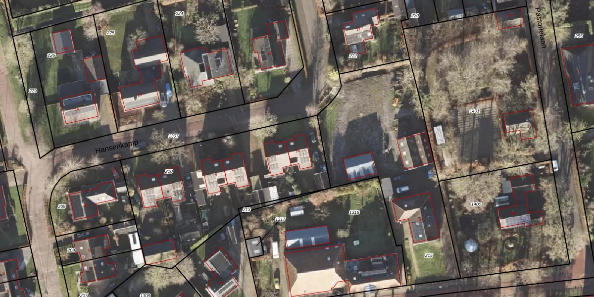 Hansenkamp 15 is gelegen op kadastraal perceel RDN01Q210. Deze kadastrale aanduiding is uniek en wordt gebruikt door het Kadaster om eigendomsrechten en andere zakelijke rechten vast te leggen. Het perceel maakt onderdeel uit van de kadastrale gemeente Roden.