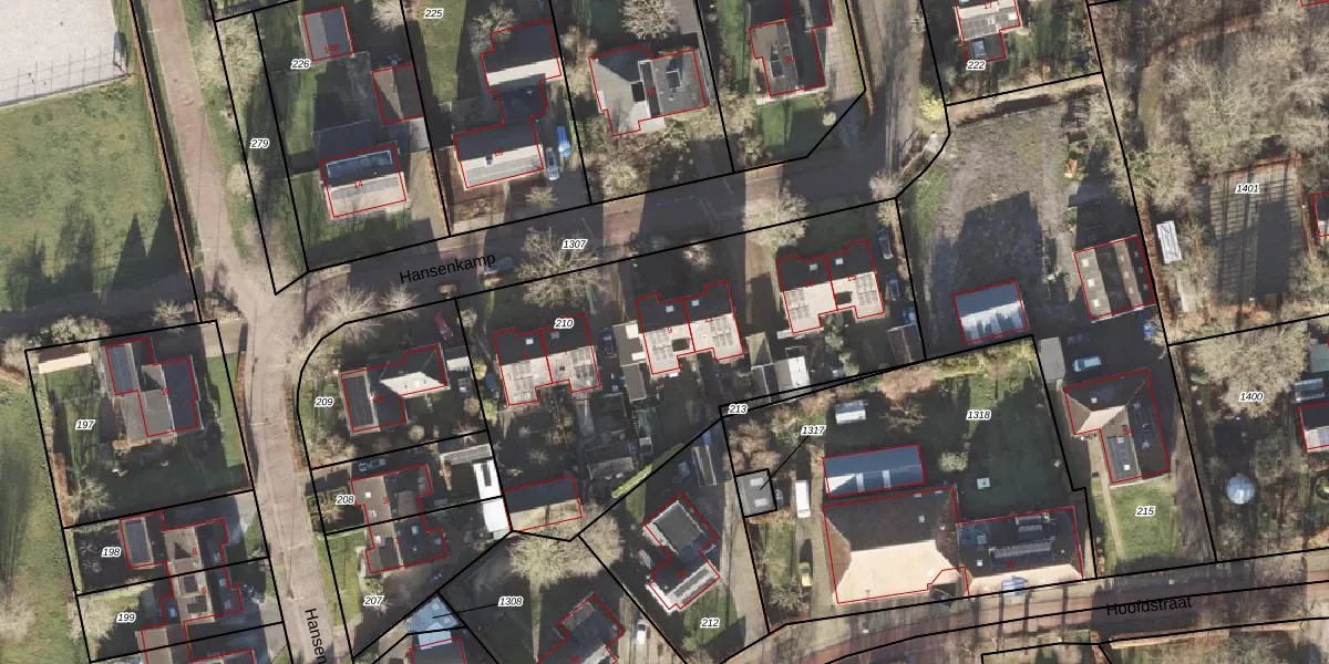 Hansenkamp 9 is gelegen op kadastraal perceel RDN01Q210. Deze kadastrale aanduiding is uniek en wordt gebruikt door het Kadaster om eigendomsrechten en andere zakelijke rechten vast te leggen. Het perceel maakt onderdeel uit van de kadastrale gemeente Roden.