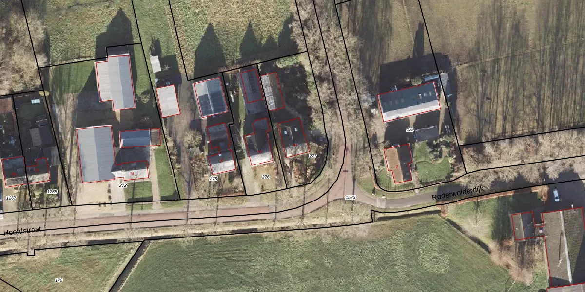 Het adres ligt op het perceel RDN01-Q-277, dat zich in de kadastrale gemeente Roden bevindt. De gemiddelde perceelgrootte in Roden is 5510,59 m². Dit perceel is kleiner: de perceeloppervlakte bedraagt 740 m². De grootste perceeloppervlakte in de kadastrale gemeente is 1,51 km². De kleinste oppervlakte bedraagt 0 m². Op het perceel bevinden zich geen andere adressen. De laatste wijziging in het de Basisregistratie Kadaster (BRK) was op 01-05-2020.