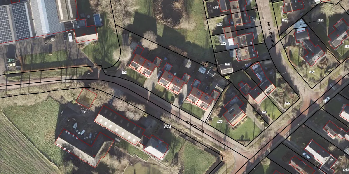 Kruiskamp 5 is gelegen op kadastraal perceel RDN01Q205. Deze kadastrale aanduiding is uniek en wordt gebruikt door het Kadaster om eigendomsrechten en andere zakelijke rechten vast te leggen. Het perceel maakt onderdeel uit van de kadastrale gemeente Roden.