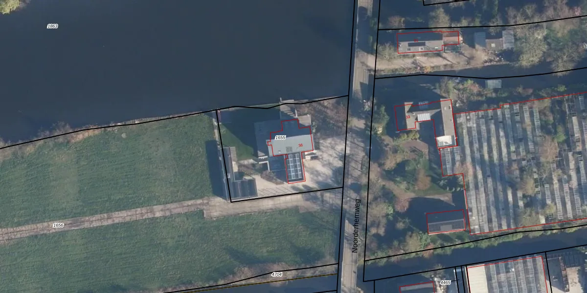 Noorderhemweg 36 is gelegen op kadastraal perceel AKM01K1655. Deze kadastrale aanduiding is uniek en wordt gebruikt door het Kadaster om eigendomsrechten en andere zakelijke rechten vast te leggen. Het perceel maakt onderdeel uit van de kadastrale gemeente Alkemade.