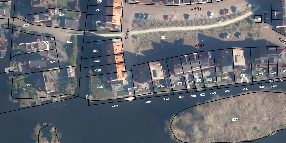 Het perceel waarop Robijn 55 staat heeft een oppervlakte van 279 m². Dit is een middelgroot perceel. De perceeloppervlakte wordt geregistreerd door het Kadaster. Gedetailleerde informatie over de maten van dit perceel kunt u vinden in het rapport Kadastrale kaart met maatvoering van Robijn 55.