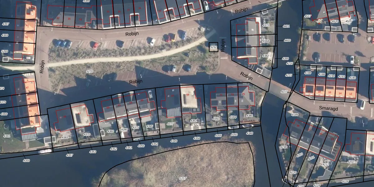 Het perceel waarop Robijn 69 staat heeft een oppervlakte van 306 m². Dit is een groot perceel. De perceeloppervlakte wordt geregistreerd door het Kadaster. Gedetailleerde informatie over de maten van dit perceel kunt u vinden in het rapport Kadastrale kaart met maatvoering van Robijn 69.