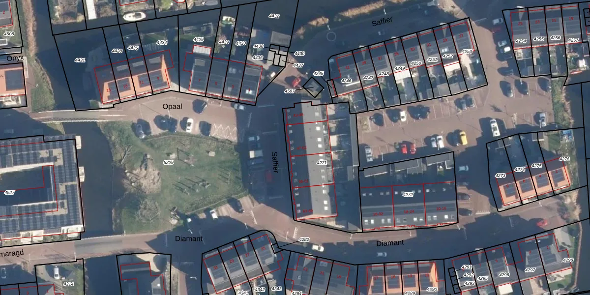 Het perceel waarop Saffier 51 staat heeft een oppervlakte van 992 m². Dit is een groot perceel. De perceeloppervlakte wordt geregistreerd door het Kadaster. Gedetailleerde informatie over de maten van dit perceel kunt u vinden in het rapport Kadastrale kaart met maatvoering van Saffier 51.