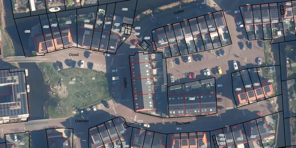 Het perceel waarop Saffier 53 staat heeft een oppervlakte van 992 m². Dit is een groot perceel. De perceeloppervlakte wordt geregistreerd door het Kadaster. Gedetailleerde informatie over de maten van dit perceel kunt u vinden in het rapport Kadastrale kaart met maatvoering van Saffier 53.
